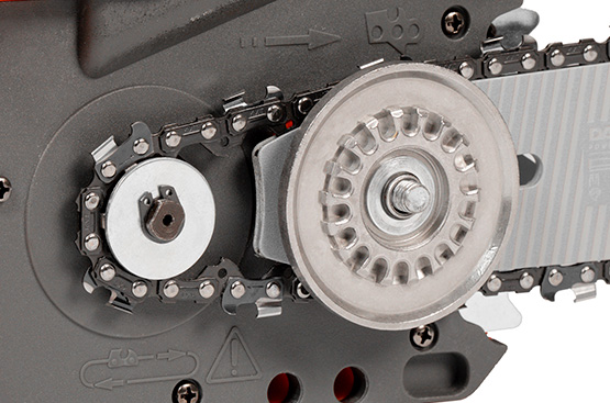 Металлическая ведущая звездочка гарантирует долговечность и надежность работы привода электропилы.