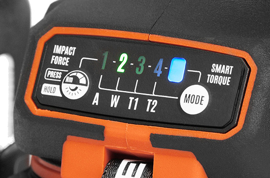 Винтоверт оснащен 4 предустановленными режимами крутящего момента: