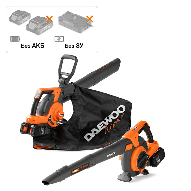 Воздуходувка совместима со всеми аккумуляторными инструментами и батареями DAEWOO линейки 21В.